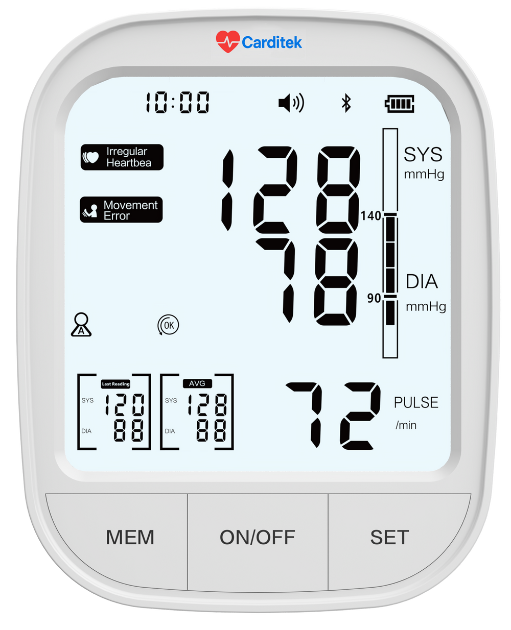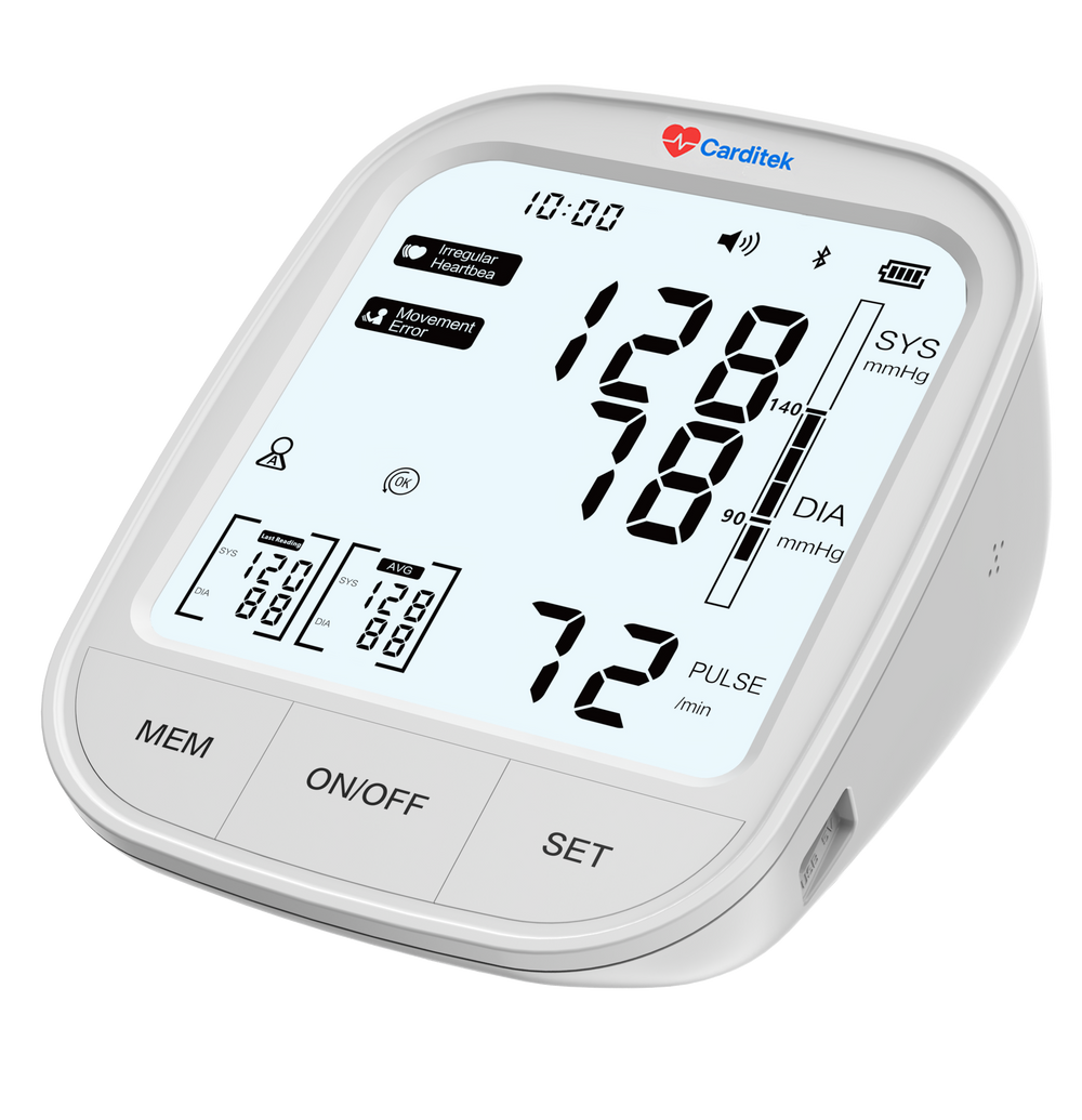 TENSIÓMETRO DIGITAL AUTOMÁTICO PARA BRAZO CON PANTALLA LCD RETROILUMINADA Y BATERÍA RECARGABLE INTEGRADA, DISEÑADO PARA LA MEDICIÓN PRECISA DE LA PRESIÓN ARTERIAL Y EL PULSO. INCORPORA CONECTIVIDAD BLUETOOTH, MEMORIA PARA DOS USUARIOS Y FUNCIÓN DE VOZ, FACILITANDO EL MONITOREO Y SEGUIMIENTO DE LA PRESIÓN ARTERIAL TANTO EN EL HOGAR.